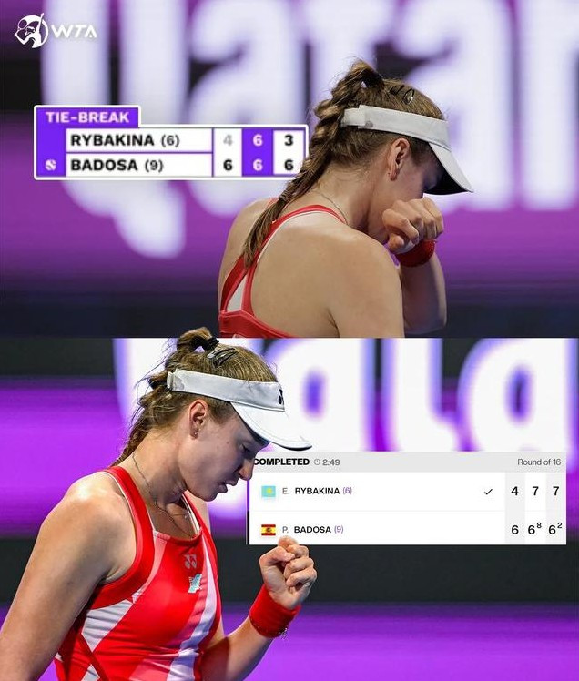 在迪拜免税网球锦标赛一场惊心动魄的对决中,葆拉·巴多萨在手握6个赛点的情况下惨遭埃琳娜·莱巴金娜逆转,最终以**6-4、6-7(8)、6-7(3)**落败,无缘晋级八强。